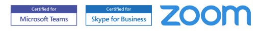 - Zgodne platformy komunikacyjne: Microsoft Teams, Skype for Business, Zoom, Vidyo, BlueJeans, Cisco Spark / Teams / Webex, Broadsoft