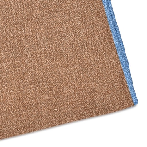 Elegancka brązowa poszetka Hemley z błękitną obwódką.