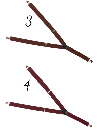 W oficjalnych sytuacjach nie chcemy jednak przyciągać wzroku tym elementem garderoby. Dlatego dobrałbym szelki pod kolor koszuli lub marynarki. Szelki do garnituru ślubnego podlegają tym samym regułom. W przypadku garniturów codziennych czy zestawów nieformalnych można się już pobawić kolorami szelek. Działają tu podobne zasady jak w przypadku poszetki. Można barwą szelek nawiązać do krawata, muszki lub do jednego z wątków tkaniny garniturowej czy do skarpetek. Wolno też po prostu wprowadzić dodatkowy kolor czy odważny wzór, na przykład wielobarwny nadruk. W końcu szelek zasadniczo nie pokazujemy, więc możemy sobie pozwolić na minimum ekstrawagancji.