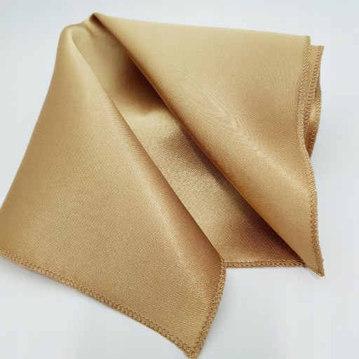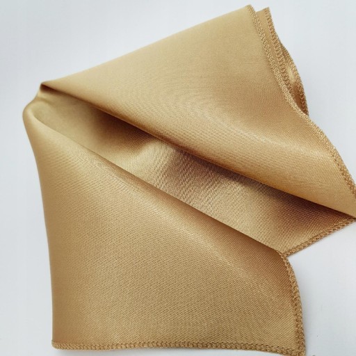 Poszetka po jednej stronie jest matowa, a po drugiej błyszcząca. Brzegi poszetki zostały starannie obszyte. Można ją złożyć w dowolny sposób.