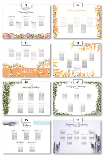 Plakat personalizowany - w cenie dopasujemy projekt zgodnie z liczbą stołów na sali oraz wpiszemy nazwiska gości