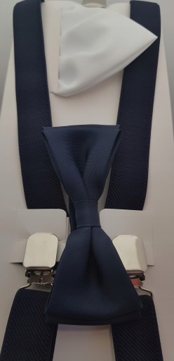 НАБОР ТЕМНО-СИНИХ ПОДДЕРЖОК С ГАЛСТКОМ-БАБОЧКОЙ И КАРМАНОМ
