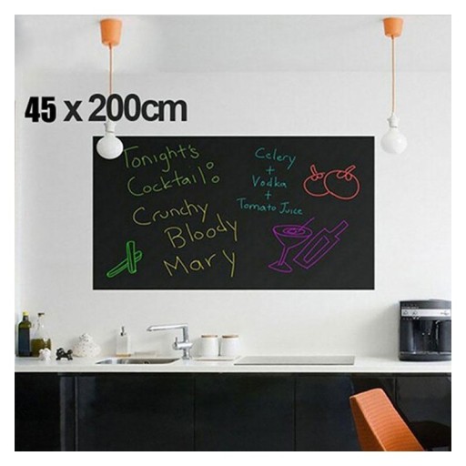 - PRAKTYCZNA - Samoprzylepna tablica kredowa świetnie sprawdzi się do każdego pokoiku dziecięcego lub w miejscu wyznaczonym do zabaw. Idealna alternatywa do standardowej stojącej tablicy kredowej. Można ją przykleić w dowolnym miejscu na suchej i gładkiej powierzchni. Łatwa w czyszczeniu - wystarczy przetrzeć szmatką. Doskonałe do dziecięcych zabaw, zapisywania planu lekcji, obowiązków domowych bądź innych ważnych informacji. W skład zestawu wchodzi dodatkowo 5 kred w różnych kolorach