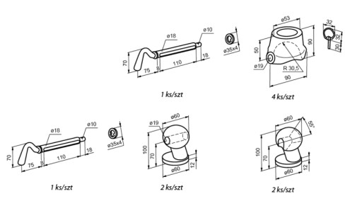 Przedmiotem sprzedaży jest komplet 4 kul do wywrotu o średnicy fi 60 , stosowany w przyczepach i skrzyniach ładunkowych do 3,5 ton .