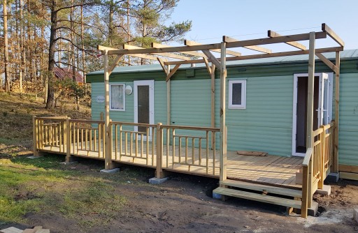 Piękny taras segmentowy do łatwego montażu! Zaprojektowany tak aby pasował pod każdy domek Holenderski. Zaledwie kilka elementów gotowych do skręcenia ze sobą! Świetnie nadaje się do domku holenderskiego, campingu, altany czy nawet domu! Solidna konstrukcja i impregnacja sprawiają, że jest on bardzo wytrzymały!