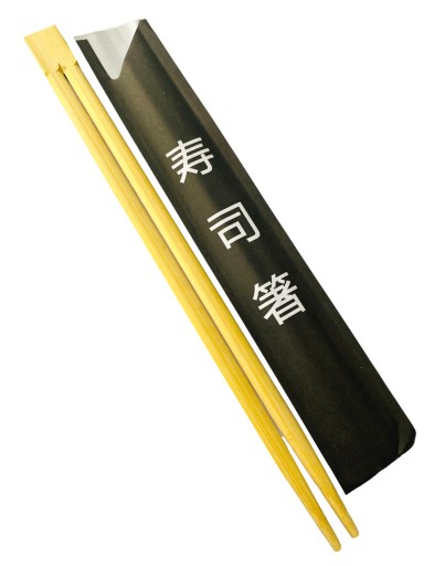 Jednorazowe pałeczki bambusowe zapakowane w indywidualną czarną, gustowną kopertę. Pałeczki są złączone ze sobą, z możliwością bezproblemowego rozerwania.