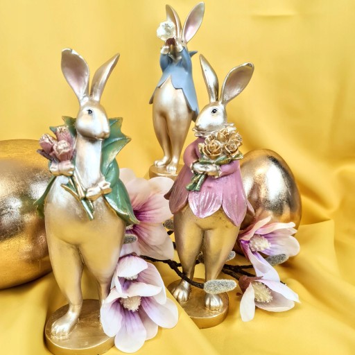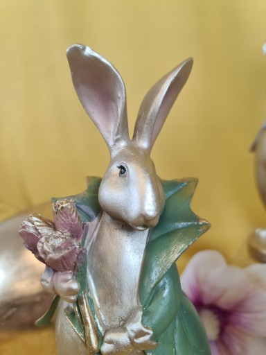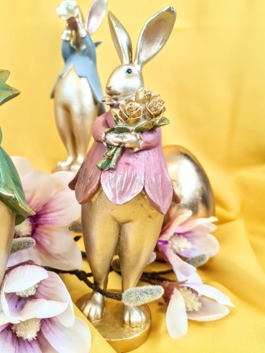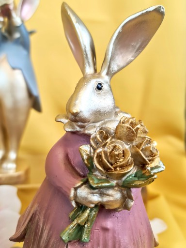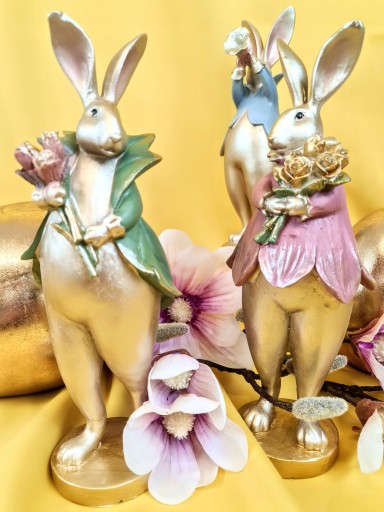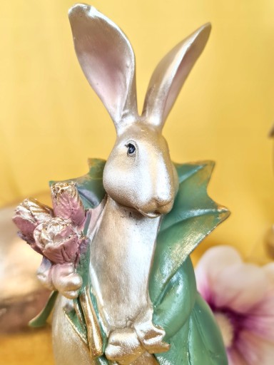 Super Pan lub Pani zając z bukietem kwiatów - Wielkanocna jak i wiosenna dekoracja do Państwa domu. Nada niepowtarzalnego charakteru wnętrzu urządzonego praktycznie w każdym stylu.