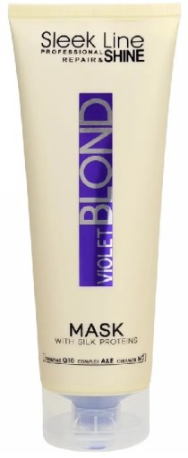 Maska z serii Sleek Line jest przeznaczona do pielęgnacji włosów blond, siwych i rozjaśnianych. Specjalnie opracowana formuła zapewnia eliminację żółtych odcieni blond, a proteiny jedwabiu doskonale regenerują i odbudowują włosy: