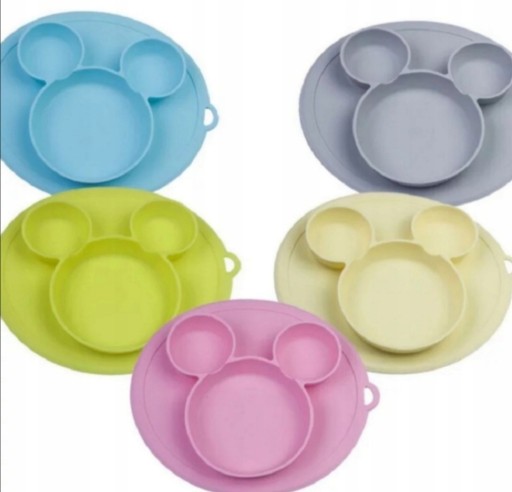 RÓŻOWY silikonowy talerzyk w kształcie myszki z podkładką.
