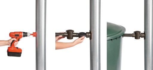 Zbieracz wody przechwytuje deszczówkę z rury spustowej do momentu, gdy woda w zbiorniku osiągnie poziom na jakim zainstalowany jest zbieracz. Nadmiar płynie dalej rurą spustową.
