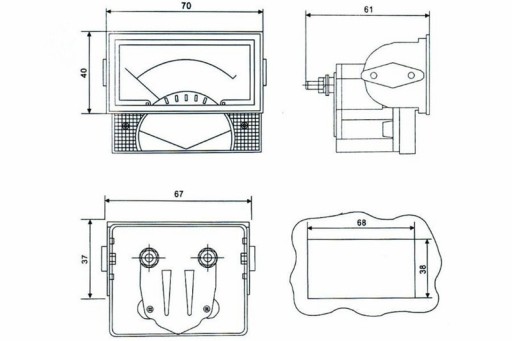- Wymiary: 70mm x 40mm x 61mm ( zewn. ) , 62mm x 38mm ( otwór montażowy)