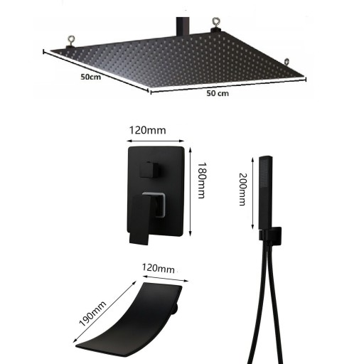 Prezentujemy Państwu zestaw prysznicowy podtynkowy sufitowy Black MattE Big 50