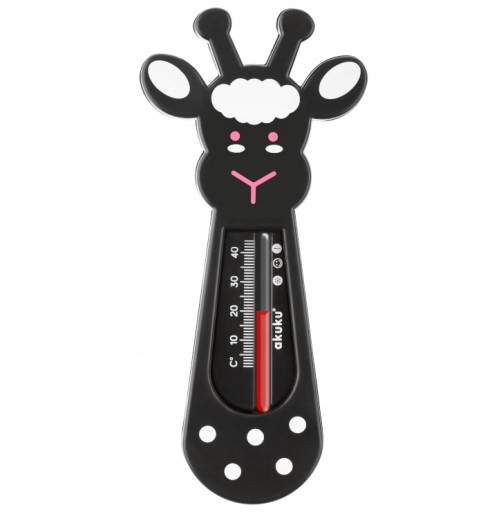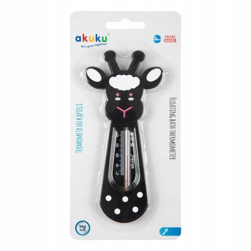Termometr do mierzenia temperatury wody „akuku” dzięki czytelnej skali pozwoli dokładnie zmierzyć temperaturę wody, a ciekawy kształt będzie atrakcją podczas kąpieli dziecka. Kolor czarno – biały stymuluje rozwój wzroku we wczesnym okresie od narodzin.