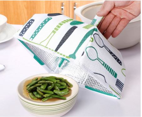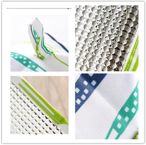 Gruba folia aluminiowa wewnątrz dłużej utrzymuje ciepłą/zimną temperaturę żywności. Można wykorzystać również latem przeciw owadów.