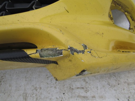 ZDERZAK W BARDZO DOBRYM STANIE, PRZERWANY BOCZNY UCHWYT W MIEJSCU WIDOCZNYM NA ZDJĘCIACH. KRATKA, GRILL I SPOILER USZKODZONE.