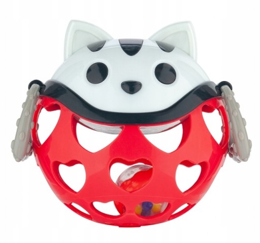 Zabawka ma różne faktury materiału i kontrastowe kolory które stymulują zmysły dziecka. Elastyczne i ażurowe elementy ułatwiają chwytanie i rzucanie zabawką. Grzechotka z kolorowymi koralikami widoczna jest przez ażurowe elementy na pewno wzbudzi to ciekawość i zachęci maluszka do zabawy, a elastyczne uchwyty z wypustkami ukoją swędzące dziąsła.