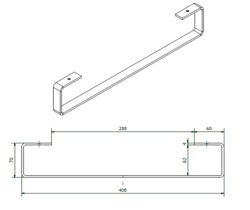Uchwyt jest w kolorze czarnym, został wykonany z płaskownika stalowego 20x4mm. Dzięki swojemu prostemu, a zarazem nowoczesnemu wykonaniu znajdzie zastosowanie w każdym domu.