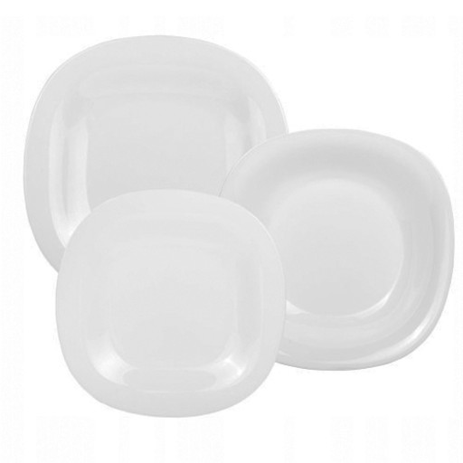 Chciałbyś odmienić swój stół i nadać mu odrobinę świeżości? Przedstawiamy nowość w naszym sklepie! Zestaw obiadowy w skład którego wchodzi po 6 talerzy głębokich, obiadowych i deserowych! Zestaw Carine Luminarc wyróżnia się lekko zaokrąglonym kwadratowym, co czyni go niezwykle eleganckim. Biały talerzy jest teraz niezwykle uniwersalny i bije rekordy popularności w sprzedanych egzemplarzach. Każdy chce je mieć w swojej jadalni. Nie wahaj się i kup go już dzisiaj!