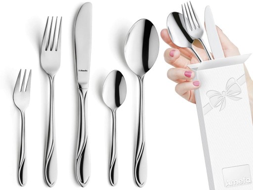 Oferta dotyczy 30 elementów sztućców obiadowych, przeznaczonych dla 6 osób. Dodatkowo możesz zamówić inne sztućce z linii Amefa znajdujące się w naszej ofercie, sam decydujesz o tym jaki rodzaj i jaką ilość sztućców zamawiasz.