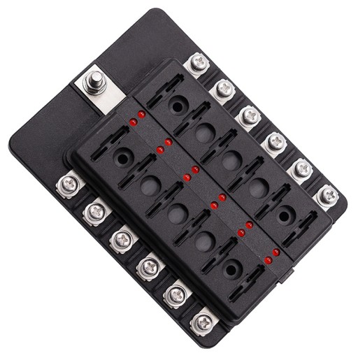-Produkt ma czerwoną konstrukcję wskaźnika LED, odpowiadającą każdemu bezpiecznikowi podłączonemu do urządzeń elektrycznych, gdy bezpiecznik jest uszkodzony, czerwone światło będzie jasne, możesz od razu wiedzieć, który bezpiecznik jest uszkodzony, łatwy w obsłudze