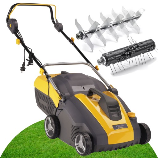 Solidny, niezawodny wertykulator / aerator elektryczny zasilany nowoczesnym, mocnym silnikiem 1500 W. Urządzenie cechuje się szerokością pracy aż 38 cm oraz posiada duży kosz 50 litrów. W zestawie znajduje się wałek do aeracji i wałek do wertykulacji.