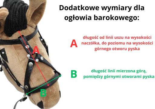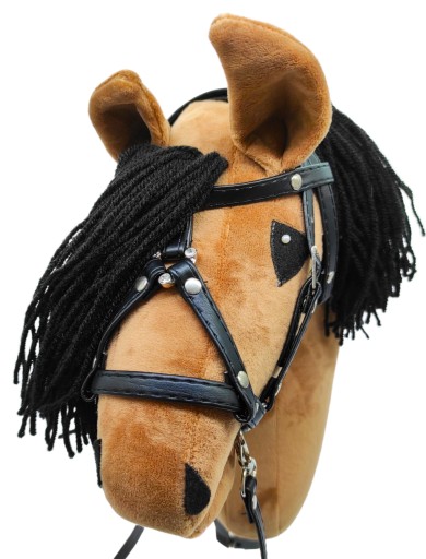 Oferujemy Państwu regulowane ogłowie barokowe dla hobby horsa wraz z wędzidłem, wykonane z ekoskóry oraz napowane.