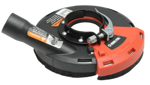 Pasuje do wszystkich małych szlifierek 115 mm - 125 m. Skutecznie odsysa szkodliwy pył, osłona przeciwpyłowa umożliwia odsysanie pyłu podczas szlifowania. Osłone mocujemy w miejsce standardowej osłony metalowej do kołnierza wrzeciona.