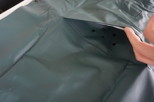 Mocne guziki stanowiące dodatkowe zabezpieczenie przed dostawaniem się wody.