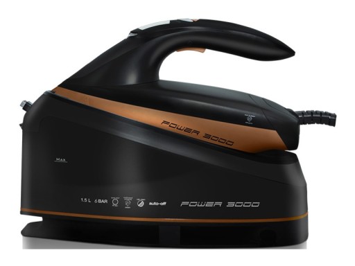 Generator pary o potężnej mocy i silnym uderzeniu pary. Umożliwia prasowanie zarówno w pionie, jak i w poziomie. Prasowanie jest niezwykle łatwe i efektywne za sprawą wygodnego uchwytu żelazka oraz ergonomicznie umieszczonego przycisku wyrzutu pary. Funkcja Smart Power sprawia, że urządzenie samoczynnie dobiera odpowiednią temperaturę do różnych rodzajów tkanin. Funkcja Quick Start zapewnia błyskawiczną gotowość do pracy. System anti-drip chroni przed kapaniem. Walorów urządzenia dopełnia wysmakowany, ekskluzywny design.