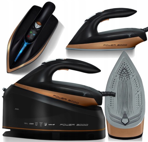 - Funkcje: Automatyczny dobór temperatury, Funkcja samooczyszczenia, Pionowy wyrzut pary, System antywapienny, Wyświetlacz LCD, Automatyczne wyłączenie żelazka, Blokada kapania
