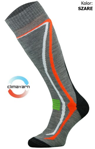 Ciepłe termiczne wełniane skarpety narciarskie / snowboardowe. Zastosowana naturalna Wełna Marino i włókna termoaktywne zapewniają, że skarpety są bardzo komfortowe. Nawet przy całodziennej jeździe skarpety nie mokną i zapewniają komfort termiczny dla stóp i nóg.