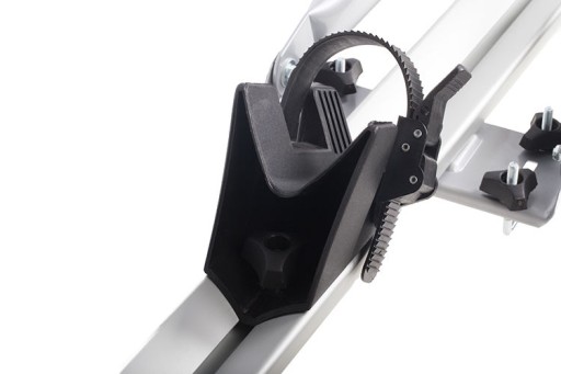 Uchwyty na szynie bagażnika są regulowane, przez co łatwo dostosujesz je pod rozstaw osi swojego roweru.