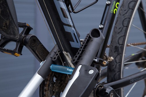 Bagażnik został wyposażony w szczękę mocującą, która automatycznie dostosowuje się do ramy roweru.