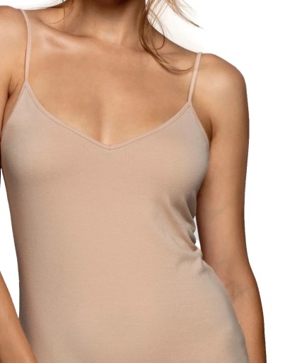 Podkoszulka charakteryzuje się cienkimi ramiączkami oraz głębokim dekoltem. Można w niej regulować długość ramiączek, dzięki czemu doskonale dopasowuje się do ciała.