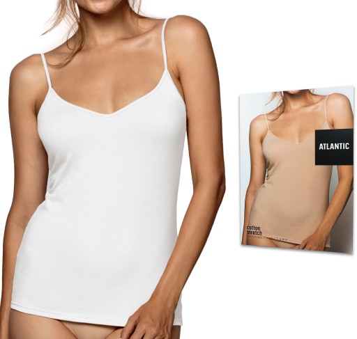 Atlantic BLV-197 to przylegająca do ciała koszulka damska wykonana z miękkiej w dotyku bawełny połączonej z elastanem, która dodatkowo jest też bardzo wytrzymała i odporna na mechaniczne działanie. Podkoszulka charakteryzuje się cienkimi ramiączkami oraz głębokim dekoltem. Można w niej regulować długość ramiączek, dzięki czemu doskonale dopasowuje się do ciała.
