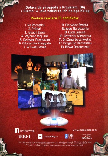 Tym razem Księga Ksiąg zabiera naszych bohaterów w przyszłość, ukazując zakończenie świata i ostateczną bitwę pomiędzy złymi mocami szatana, a Bożą armią aniołów. Krzyś musi stanowczo przeciwstawić się diabelskim oskarżeniom, podczas gdy Ola i Gizmo spotykają w niebie Apostoła Jana, opisującego wydarzenia, które Bóg mu objawił. Razem z dziećmi zobaczysz jak moc Bożego przebaczenia i zbawienia pokonują siły ciemności.