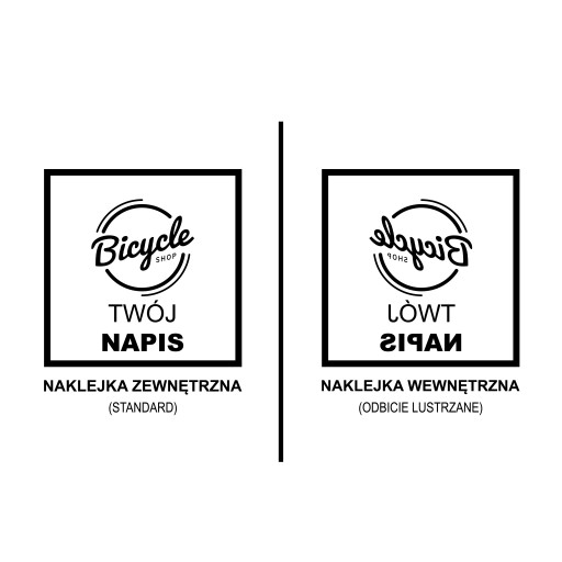 Dostępne są różne kolory naklejek, jak i odbicie standard lub lustrzane (do klejenia od wewnątrz pomieszczenia)