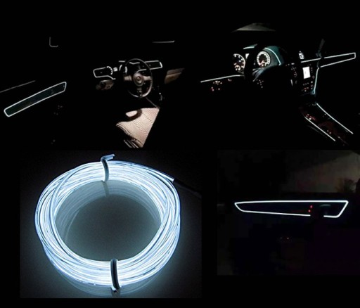 Elastyczny pasek światłowodowy do tuningu świetlnego wnętrza samochodu. Wykorzystuje technologię światła elektroluminescencyjnego - daje liniowe, białe zimne światło, które nie męczy wzroku w nocy. Montaż nie wymaga kleju, przewód El Wire posiada cienki kołnierz, który można wcisnąć w szczeliny deski rozdzielczej lub tapicerki.