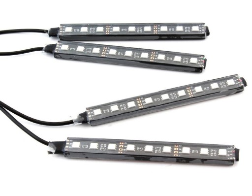 Zestaw oświetlenia LED RGB specjalnie przystosowany do wnętrza samochodu. Zasilany z gniazda zapalniczki i wyposażony w moduł Bluetooth. Można nim sterować smartfonem, a darmowa aplikacja otwiera możliwości miksowania kolorów niedostępne przy użyciu zwykłych pilotów.