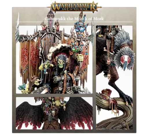 Ten plastikowy zestaw składa się z 75 elementów, z których można zbudować Gobsprakka, Usta Morka i jego uciążliwego rumaka, Killabeaka, i jest dostarczany z jedną 130-milimetrową okrągłą podstawą Cytadela. Alternatywnie ten zestaw można zbudować jako Killaboss na Corpse-rippa Vulcha. Ta miniatura jest dostarczana niepomalowana i wymaga montażu – zalecamy użycie kleju Citadel Plastic Glue i farb Citadel.