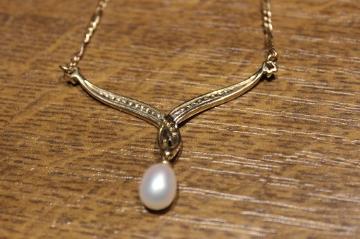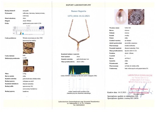 Oferujemy Państwu nowy, złoty (żółte złoto 585) - naszyjniki z naturalnymi diamentami i naturalną perłą hodowaną.