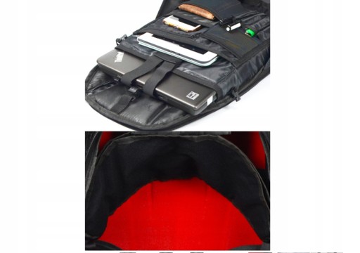 Plecak posiada funkcjonalny i wygodny organizer z miejscem na laptopa. Dla jeszcze większej przejrzystości jego wnętrze posiada czerwoną tkaninę.