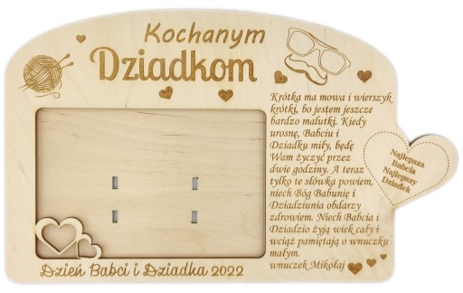 Drewniana, grawerowana ramka będzie wspaniałym prezentem dla dziadków na prezent.