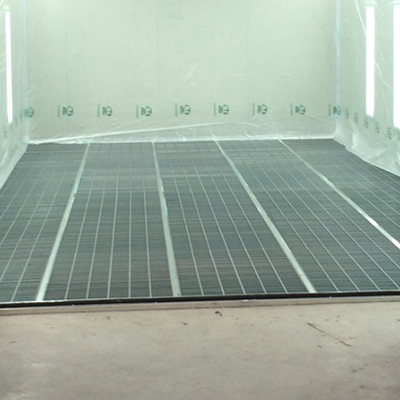 Filtr podłogowy usuwa resztki rozpylonego lakieru, chroniąc urządzenie i środowisko przed zanieczyszczeniami. Elementarne włókna szklane z progresywnie wzrastającą gęstością (60 mm) i z laminarną stroną wylotu powietrza sprawiają, że filtr ma bardzo wysoką zdolność zatrzymywania cząsteczek lakieru przy minimalnym oporze powietrza.