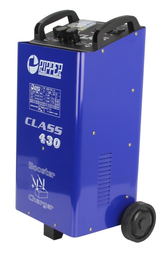 Prostownik CLASS 430 z funkcją rozruchu to profesjonalne narzędzie do ładowania i wspomagania rozruchu akumulatorów ołowiowo-kwasowych o napięciu 12 V; 24 V i pojemności akumulatorów od 40 Ah do 400 Ah.