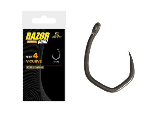 V-Curve powstał w wyniku 2 lat projektów i testów, jakie przeprowadzano w celu wyprodukowania najlepszego haczyka karpiowego. Absolutnie wyjątkowy, ale po uważnym przyjrzeniu się, rozpoznasz kilka dobrze znanych cech charakterystycznych dla serii Razor Point. Unikalny kształt litery „V” skupia siłę nacisku podczas holu na środku zakrzywienia co radykalnie ogranicza ruchy haka i eliminuje rozginanie podczas walki. Niezwykle szerokie rozwarcie, krótki trzon i ostrze skierowane do wewnątrz zapewniają niesamowitą skuteczność zacięcia i penetrację, niezależnie od stylu wędkowania, użytego przyponu lub innych materiałów przyponowych.