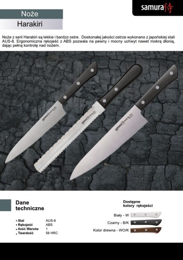 Samura Harakiri Nóż Utility 150 mm to idealne narzędzie dla każdego kucharza, który potrzebuje niezawodnego i ostrego noża do codziennych zadań. Dzięki wysokiej jakości stali AUS-8 i wygodnej rękojeści ABS, nóż ten zapewnia doskonałą wydajność i komfort. Jego lekka konstrukcja i precyzyjne ostrzenie sprawiają, że jest to nieoceniony element każdej kuchni.