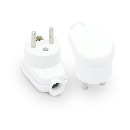 Wtyczka kątowa rozbieralna. Dostępne kolory: biały, czarny.