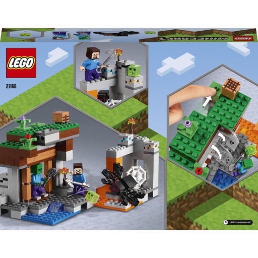 - Zestaw LEGO® Minecraft™ 21166 Opuszczona kopalnia przenosi Minecrafta do prawdziwego świata — dzieci mogą pomóc głównemu bohaterowi gry wydobywać surowce, budować konstrukcje i zwiedzać świat, a także odpierać ataki różnych wrogo nastawionych stworzeń.