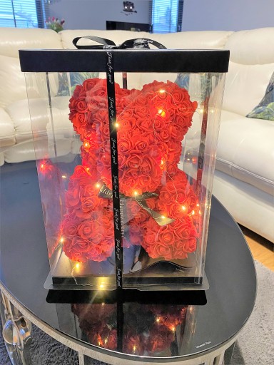 OGROMNY MIŚ kwiatowy w eleganckim pudełku z płatków róż z oświetleniem led.